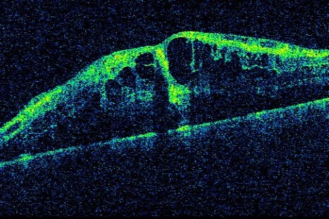 This is the early stage of diabetic eye disease and it can progress from mild to moderate to severe Non-proliferative Diabetic Retinopathy without symptoms. There may be no vision loss with Non-proliferative Diabetic Retinopathy. These stages don’t always require treatment, but are indications of how closely we need to check the eye. We start to consider treatment for diabetic eye disease when we see threatening swelling, or Diabetic Macula Edema (DME). Diabetic Macula Edema is when tiny blood vessels leak, making the retina swell, and is the most common cause of vision loss in diabetes.