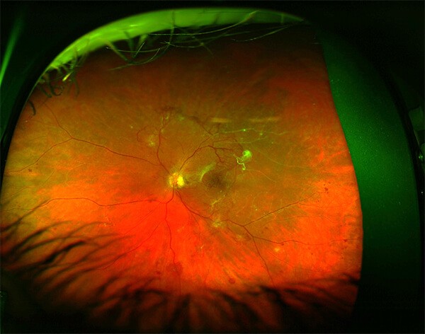 This is the more advanced stage of diabetic eye disease. It happens when the retina starts growing new blood vessels in response to excessive ischemia. This is called neovascularization. These fragile new vessels often bleed into the vitreous. If they only bleed a little, you might see a few dark floaters. If they bleed a lot, it might block all vision. These new blood vessels can form scar tissue. Scar tissue can cause problems with the macula or lead to a detached retina. PDR is a very serious condition and can cause vision loss to both your central and peripheral vision. We have multiple forms of treatment for the bleeding and scar tissue, including medicine, laser and surgery.